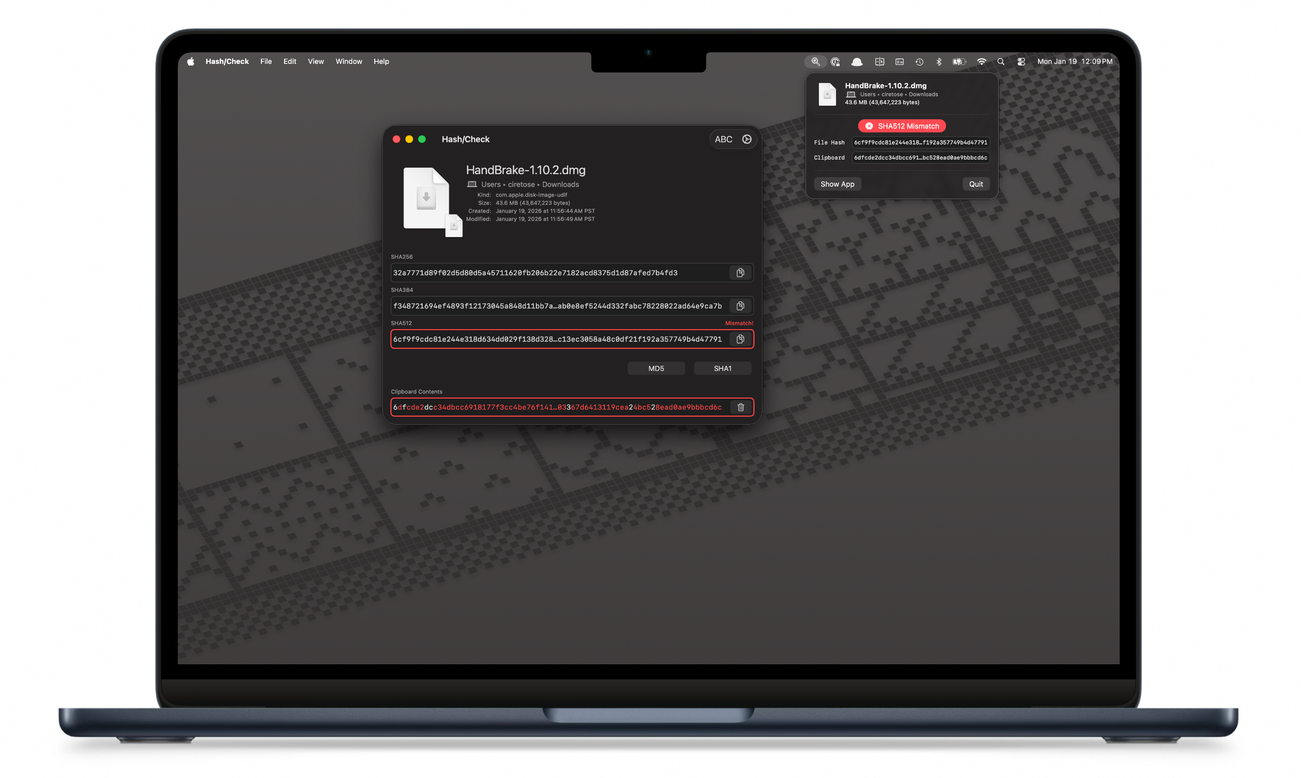 Terminal and run shasum /path/to/file and check the hashes match, I figured I'd make a go at